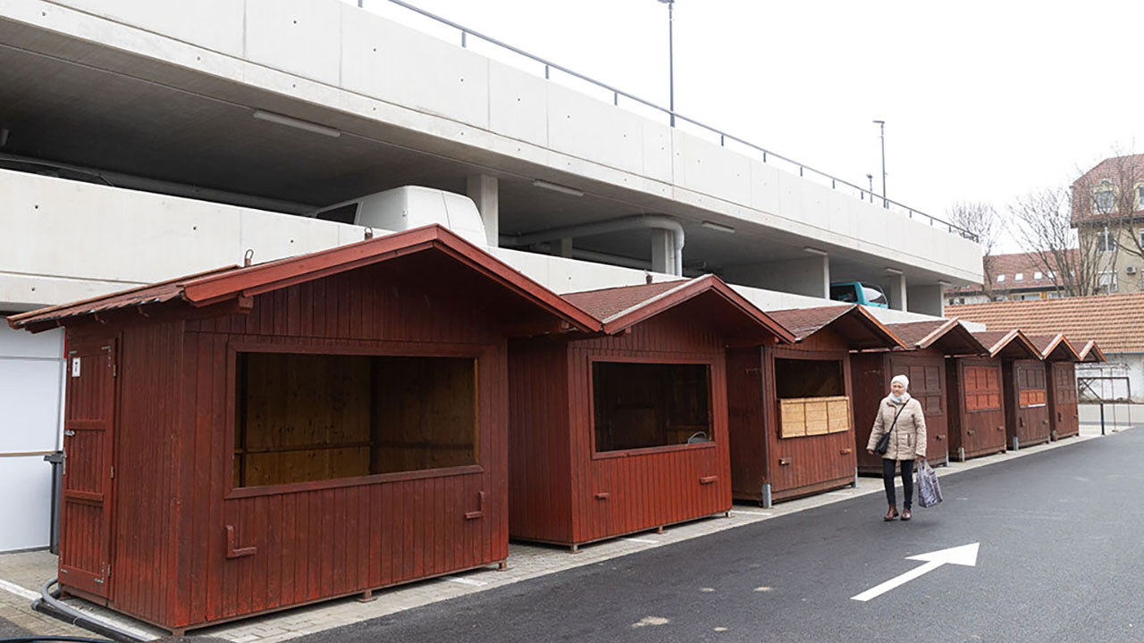 A vezérigazgató mutatta, hogy a parkolóház mellett több faházat telepítettek. Mivel rövidesen kezdődik a büfésor bontása is, egy-két héten belül ide költöznek majd onnan az árusok, akiknek biztosítanak áramot és vizet, illetve a szennyvíz elvezetését ugyancsak megoldják.